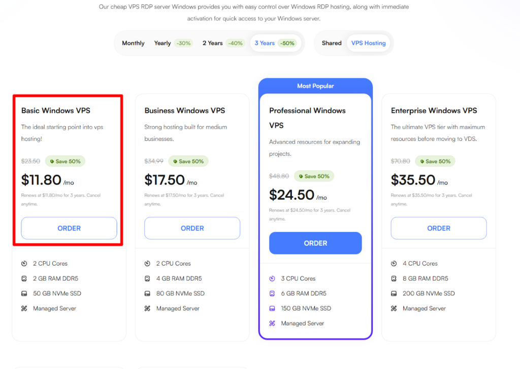 The heartwarming RDP server plans and its affordable prices by UltaHost are as follows: