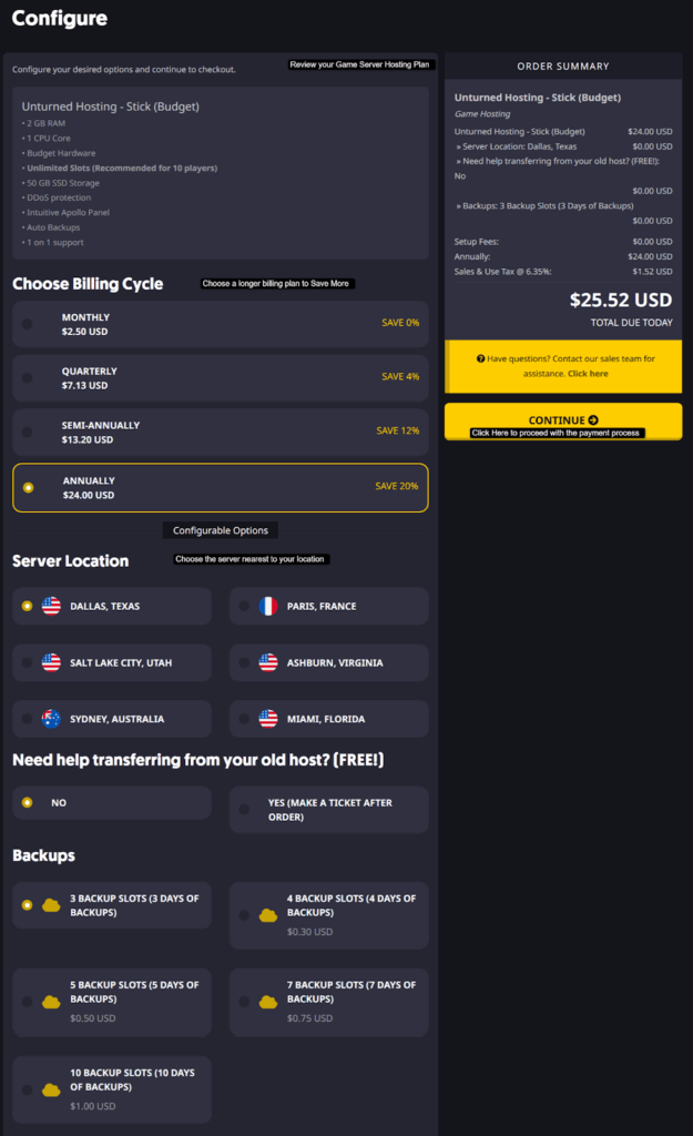 Reliable 24/7 customer support is a must for fixing problems quickly. Also, a good hosting provider often has an active community or Discord server where you can ask questions, get help, and share tips with other Unturned players.